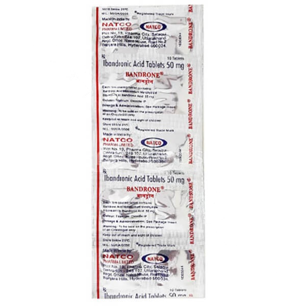 Bandrone 50 mg (Ibandronic Acid) is a medication prescribed to promote bone strength and prevent bone-related conditions such as osteoporosis.