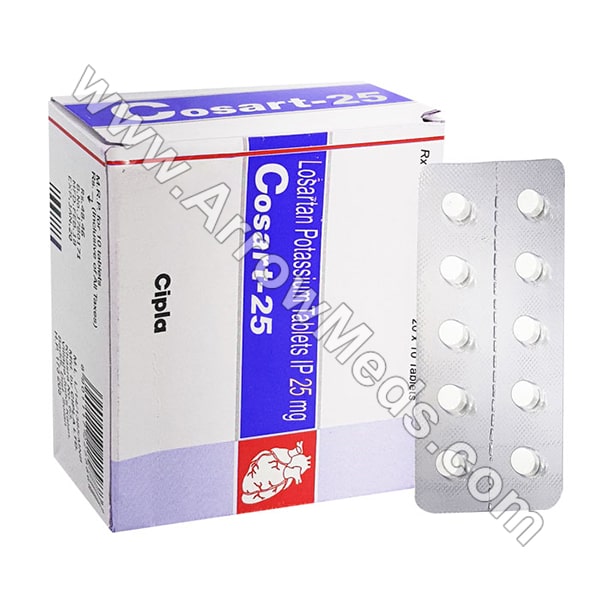 Cosart 25 mg is a medication containing losartan potassium, prescribed for the treatment of hypertension (high blood pressure).