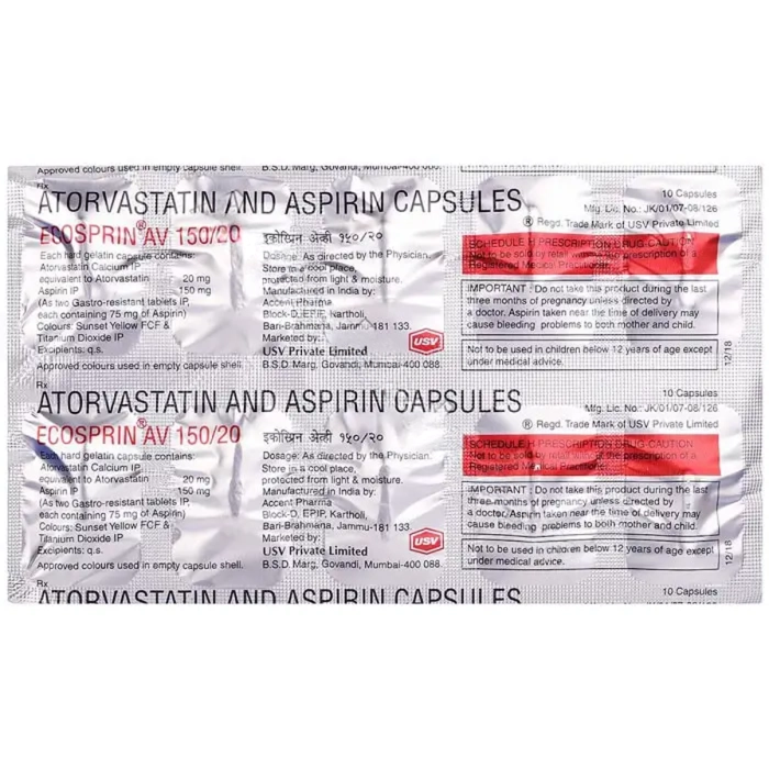 It’s essential to use Ecosprin AV 150/20 mg under the guidance of a healthcare professional and to be aware of potential side effects associated with both Atorvastatin and Aspirin.