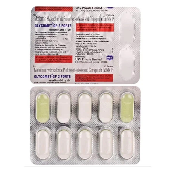 Glycomet-GP 3 Forte combines metformin and glimepiride for high-dose diabetes management.