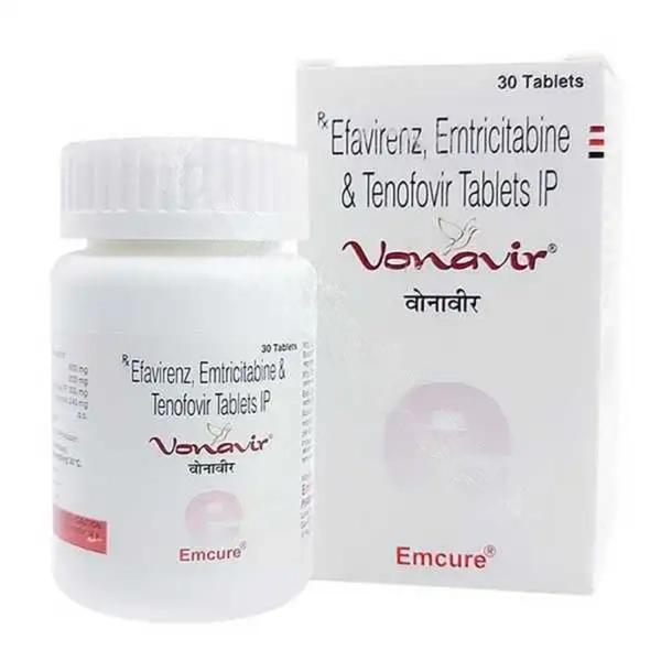 Vonavir Tablet offers triple-action HIV control with one pill a day. Combines Emtricitabine, Tenofovir, and Efavirenz to effectively control HIV.